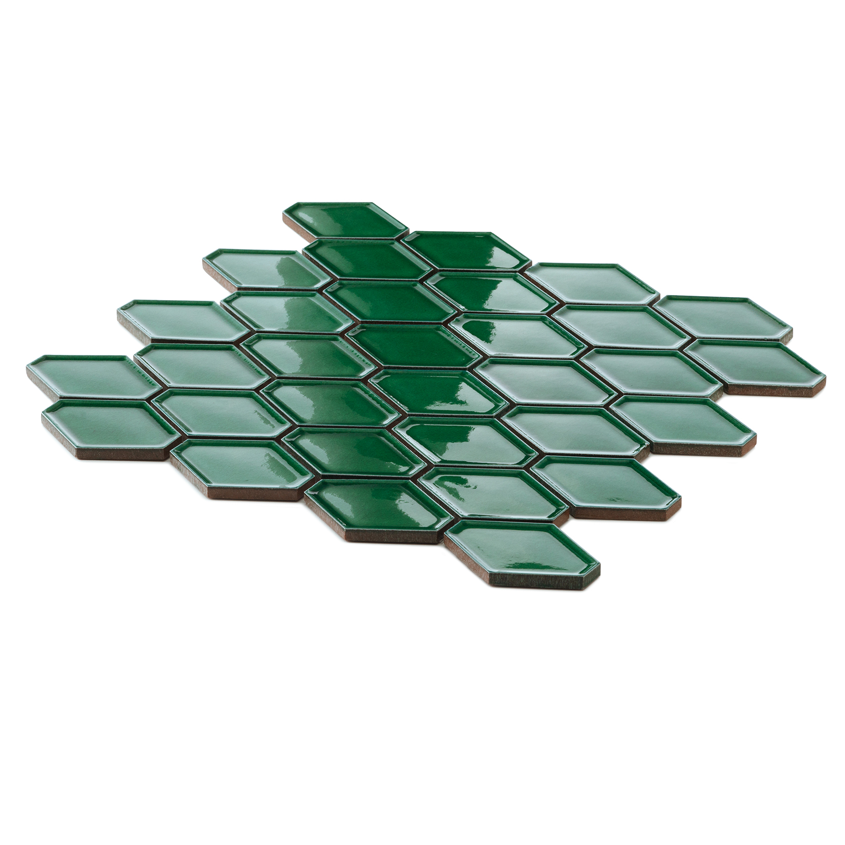 Mozaika Daring Emerald to elegancki sposób na wprowadzenie intensywnej zieleni i nowoczesnej geometrii do wnętrza. Dzięki swojej trwałości, elastycznemu montażowi i efektownemu kolorowi sprawdzi się zarówno w domowych łazienkach i kuchniach, jak i przestrzeniach komercyjnych, które potrzebują dekoracyjnego i stylowego akcentu.