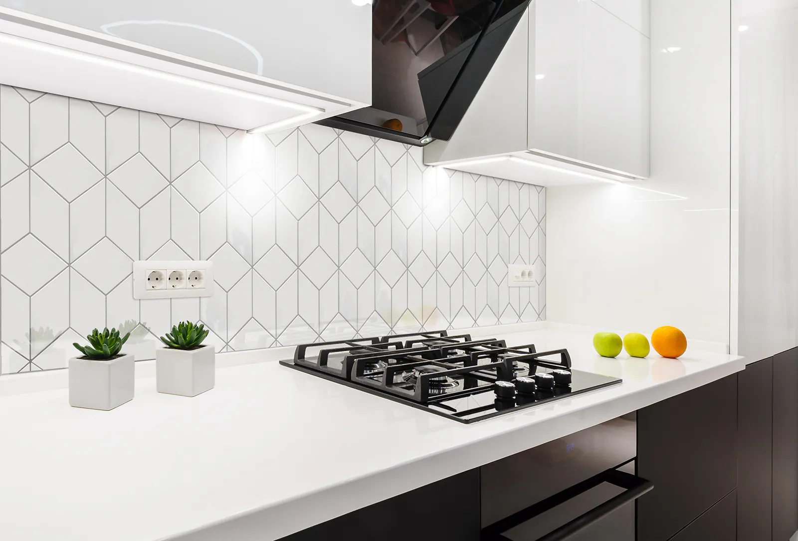 biel mozaiki świetnie współgra z szeroką gamą kolorów i materiałów,
