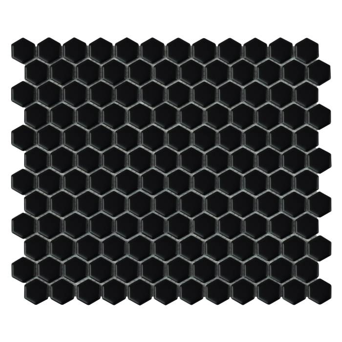 MINI HEXAGON BLACK MATT to stylowa mozaika w kształcie heksagonów, która nadaje wnętrzom nowoczesny i elegancki charakter. Matowe wykończenie zapewnia subtelny, designerski efekt, idealny do minimalistycznych aranżacji.